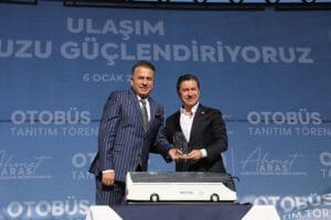 Tören sonunda Anadolu Isuzu Türkiye Satış Direktörü Yusuf Teoman ve Temsa Yurtiçi Satış Müdürü İrfan Özsevim, Başkan Ahmet Aras’a plaket takdim etti ve hep birlikte kurdele kesimi gerçekleştirildi.