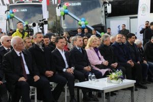 Muğla Büyükşehir Belediyesi’nin yeni otobüsler için düzenlediği tanıtım törenine Büyükşehir Belediye Başkanı Ahmet Aras ev sahipliğinde CHP Muğla İl Başkanı Zekican Balcı, 27. Dönem Muğla Milletvekilli Burak Erbay, Ula Belediye Başkanı Mehmet Caner, CHP Menteşe İlçe Başkanı Nail Kızıl, CHP Yatağan İlçe Başkanı Mehmet Kemiksiz, Muğla Yörük Obaları Derneği Başkanı Orhan Akcan, Muğla Şoförler ve Otomobilciler Odası Başkanı Arif Özer toplu taşıma esnafı temsilcileri ve vatandaşlar katıldı.