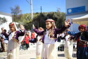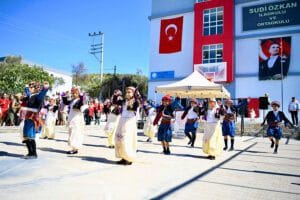 Saygı duruşu ve istiklal marşının okunmasıyla başlayan tören 2/A sınıfı öğrencisi Recep Efe Ülkü’nün okuduğu Okul Türküsü isimli şiirinin okunması ve halk oyunları gösterisi ile devam etti.