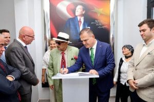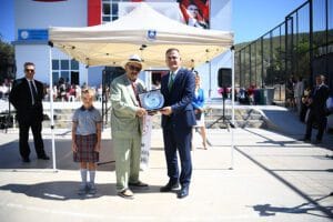 Kurdela kesiminin ardından Muğla Valisi Dr. İdris Akbıyık Hayırsever Sudi Özkan’a günün anısına teşekkür plaketi takdim etti.