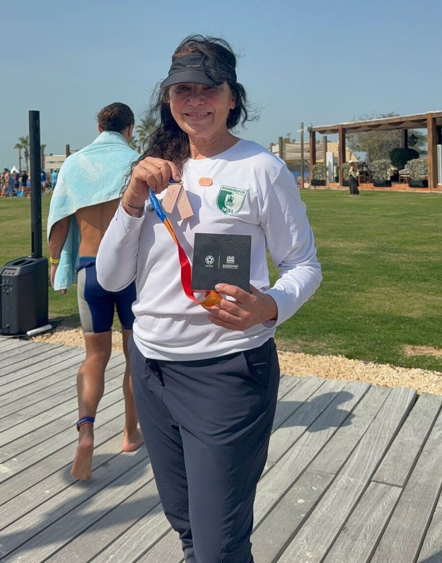 Bodrumspor Yüzme Şubesi Master Yüzme Takımı sporcusu Müge Ulusan, Open Masters Games Abu Dhabi 2026 kapsamında düzenlenen 5 kilometre açık su yüzme yarışında yaş grubunda üçüncü olarak önemli bir uluslararası başarıya imza attı. Dubai’de gerçekleştirilen organizasyonda elde edilen bu derece, kulübün uluslararası platformdaki görünürlüğünü de artırdı.