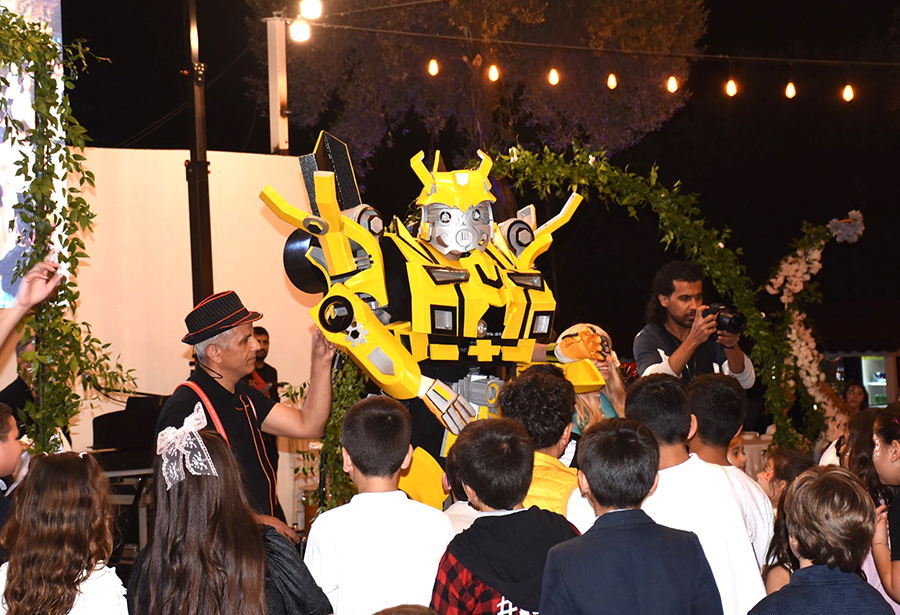 Akşam başlayan programda ise çocuklar oldukça eğlenceli anlar yaşadı. Ebeveynlerin yanında düğüne gelen çocuklar, onlar için hazırlanan gösterilerde gönüllerince eğlendi. Patlamış mısır, Osmanlı macunu ve pamuk şeker ikram edilen çocuklar için, animasyon ve çizgi filmlerden “Bumblebee” adıyla bildikleri sarı otobotun sahneye çıkması büyük sürpriz oldu.