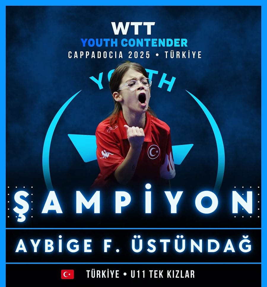 Uluslararası Masa Tenisi Federasyonu’nun (ITTF) 2025 faaliyet programında yer alan WTT Gençler Kapadokya Turnuvası, Nevşehir’de düzenlendi. 50 ülkeden 350 sporcunun katıldığı turnuvada Muğla Büyükşehir Belediyesi Masa Tenisi Sporcusu Aybige Feride Üstündağ U11 Kızlarda birinci oldu. Aybige Feride Üstündağ bu başarısı ile puanını 57’ye yükseltti ve Dünya dördüncüsü olarak büyük bir başarıya imza attı.