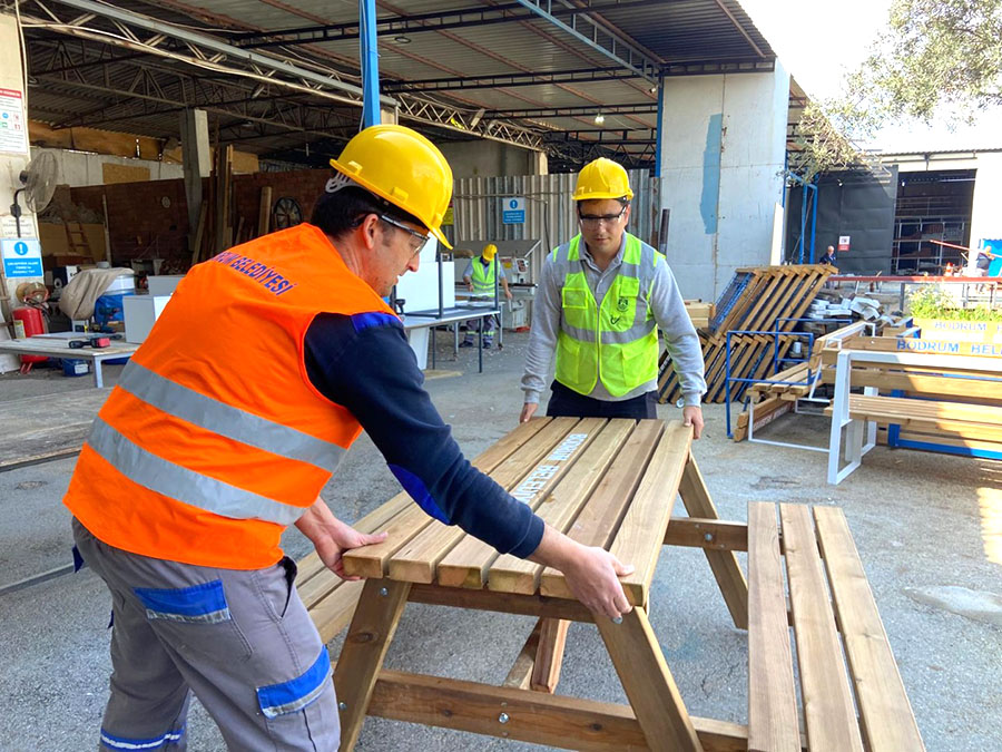 Bodrum Belediyesi Yalıkavak KADEME’de yer alan doğrama, demirhane ve boyama atölyelerinden çıkan ürünler, ihtiyaç belirlemelerinin ardından Bodrum’un her köşesinde kullanılmak üzere dağıtıma çıkıyor.