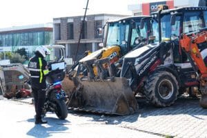 Bodrum Belediyesi Zabıta Müdürlüğü Trafik Zabıta Amirliği ekipleri, ilçe genelinde kamusal alanları işgal eden iş makinelerine uygulama yaparken araç sahiplerine ulaşarak uyarılarda bulundu. İş makinelerinin kaldırılması sağlanırken sahiplerine ulaşılamayan araçlara Zabıta Uygulama Yönetmeliğinin 10. Maddesi 1. ve 7. Fıkrasından işlem yapıldı.