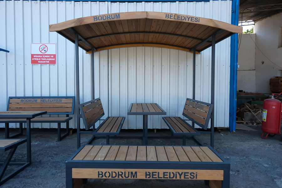 Bodrum Belediyesi Destek Hizmetleri Müdürlüğü Atölyeler Bürosu tarafından kent genelinde gerçekleştirilen çalışmalara yenileri eklendi. Atölyelerde bugüne kadar üretilen bank, piknik masası ve ofis mobilyalarının yanı sıra; masaya dönüşebilen bank, kamelyalı piknik masası, ahşap kaplama saksılar, küllüklü çöp kutuları ve farklı alanlarda kullanılmak üzere ipli, telli ve tamamen ahşap çit çeşitleri ile kedi kulübeleri de üretildi.