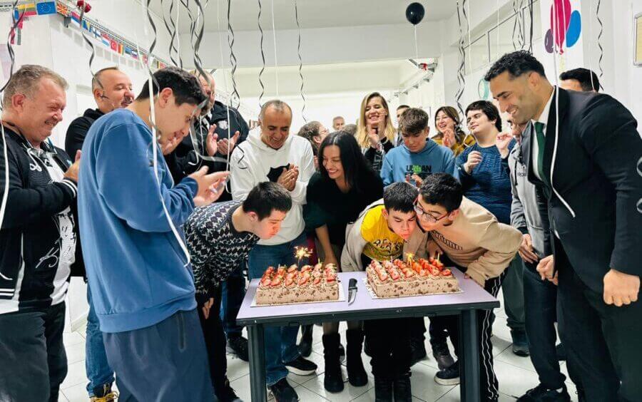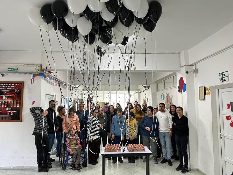 Siyah beyazlıların 3 Aralık Dünya Engelliler Günü kapsamındaki ziyaretinde, öğrencilerle pasta kesildi ve çeşitli ikramlarda bulunuldu.