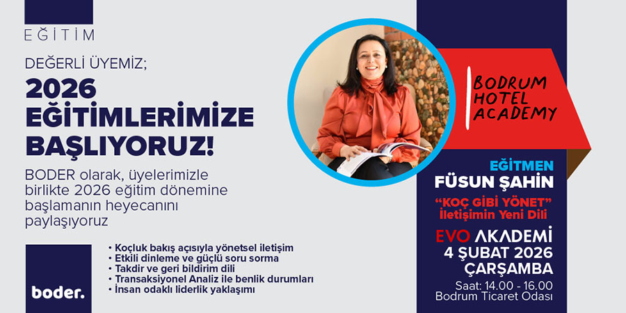Alanında yetkin, sektöre yön veren ve güçlü isimlerin katılımıyla gerçekleştirilecek bu programlarla; yönetim kalitesi, insan kaynağı ve hizmet standardının güçlendirilmesi hedefleniyor. BODER, bu eğitim ve etkinliklerin Bodrum turizminin kurumsal yapısına ve sürdürülebilir gelişimine somut katkı sağlayacağına inanıyor.