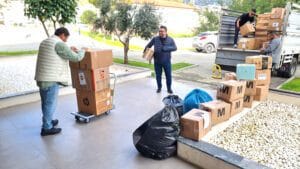 Aralarında giyim, ev tekstili, kitap, battaniye, kırtasiye malzemesi ve oyuncakların bulunduğu paketlerin araca yüklenmesine BODTO Başkanı Mahmut Kocadon, Bodrum Fenerbahçeliler Derneği Başkanı Gürkan Topan ve dernek yönetim kurulu üyeleri de katıldı.