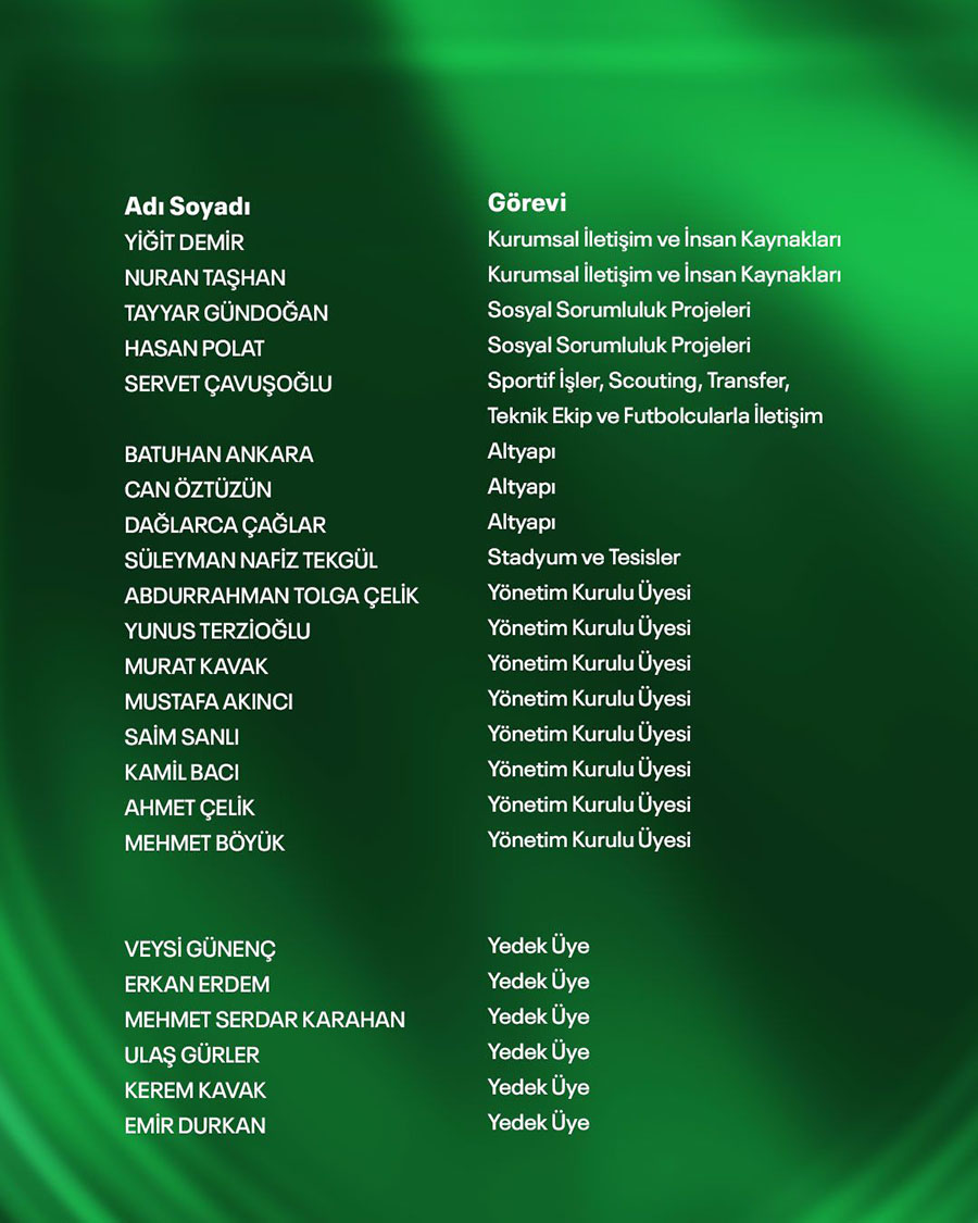 YENİ YÖNETİM LİSTESİ AÇIKLANDI