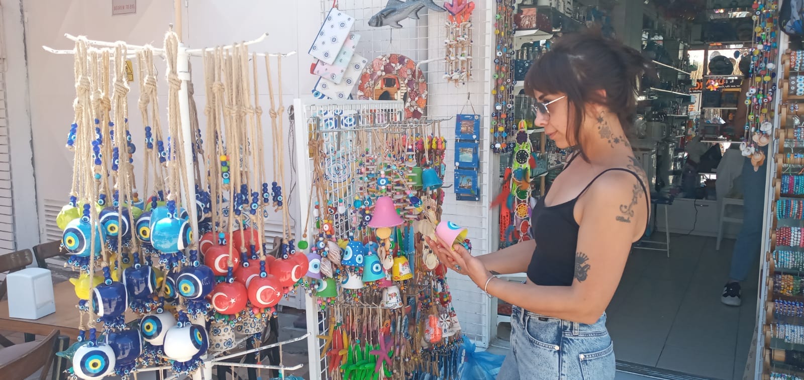 Bodrum’a gelen yerli ve yabancı turistlerin hediyelik eşya tercihlerinde el emeği göz nuru rengarenk boncuklar ilgi görüyor.