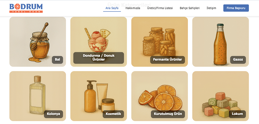 Bodrum’un öne çıkan yerel ürünlerini tanıtmayı amaçlayan sitede; mandalina, bal, kolonya, lokum, reçel, sabun gibi ürün kategorilerinde üretim yapan üreticiler ve firmalar bulunuyor. Her üreticiye ait tanıtım ve iletişim bilgileriyle desteklenen içerikler sayesinde tüketiciler üreticilere doğrudan ulaşabiliyor. Sitede ayrıca, çeşitli kooperatiflere de yer veriliyor. Böylece hem yerel üretim destekleniyor hem de bölge ekonomisine doğrudan katkı sağlanıyor.