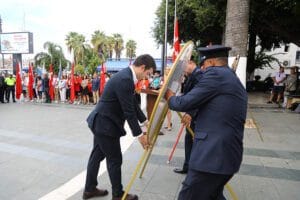 Atatürk heykeli önünde çelenk sunumuyla başlayan tören, saygı duruşunda bulunulması ve İstiklal Marşı’nın okunmasıyla devam etti. Tören, Muharip Gaziler Derneği Bodrum Şube Başkanı Hasan Külcü’nün günün anlam ve önemini belirten konuşmasının ardından toplu fotoğraf çekimiyle sona erdi.