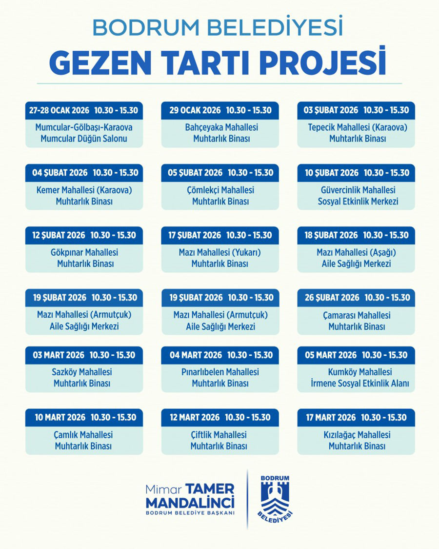 Projenin ilk durağı Mumcular, Gölbaşı ve Karaova mahalleleri olacak. 27-28 Ocak 2026 tarihlerinde, 10.30 ile 15.30 saatleri arasında Mumcular Düğün Salonu’nda Mumcular, Gölbaşı ve Karaova mahalle sakinleri “Gezen Tartı” hizmetinden faydalanabilecek.