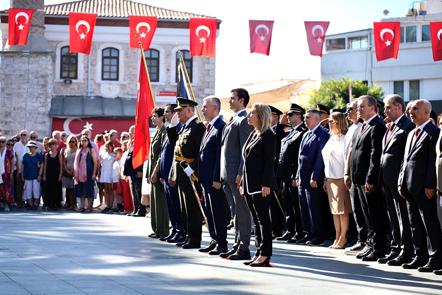 Bodrum Belediye Başkanı Tamer Mandalinci, “Bundan tam 103 yıl önce Başkomutan Gazi Mustafa Kemal Atatürk ve silah arkadaşlarının kararlılık, azim, inanç ve bu topraklara olan bağlılığı ile ‘Ya istiklal Ya Ölüm’ diyerek 26 Ağustos’ta Kocatepe’de başlayan Büyük Taarruz 30 Ağustos 1922’de zafer ile sonuçlandı. Mustafa Kemal Atatürk’ün söylediği gibi ‘Zafer, zafer benimdir diyebilenindir. Başarı ise, başaracağım diye başlayarak sonunda başardım diyebilenindir.’ İşte bugün burada büyük zaferden tam 103 yıl sonra Türkiye’nin dört bir yanında olduğu gibi Bodrum’un da dört bir yanında yine meydanlarımızı aziz Türk bayrağıyla, yine kalplerimizde Türk milletini ve bu topraklarda yaşayan milyonlarca vatandaşımıza bağlılıkla açtık. Bizi biz yapan değerlerimizi, kutsallarımızı koruyup yaşatmalıyız. Bunun için en büyük gücün yine sizlerden yine sizlerin bize olan güveninden alıyoruz.” dedi.