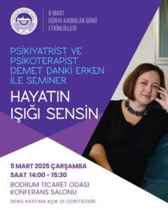 Bu kapsamda 5 Mart 2025 Çarşamba günü gerçekleşecek etkinliklerde Bodrumlu Kadınlarla buluşuyor, kadının varoluşuyla yüce kişiliğinin farkındalığının artırılmasına yönelik çalışmalarla kadınlarımızla birlikte olacağız.