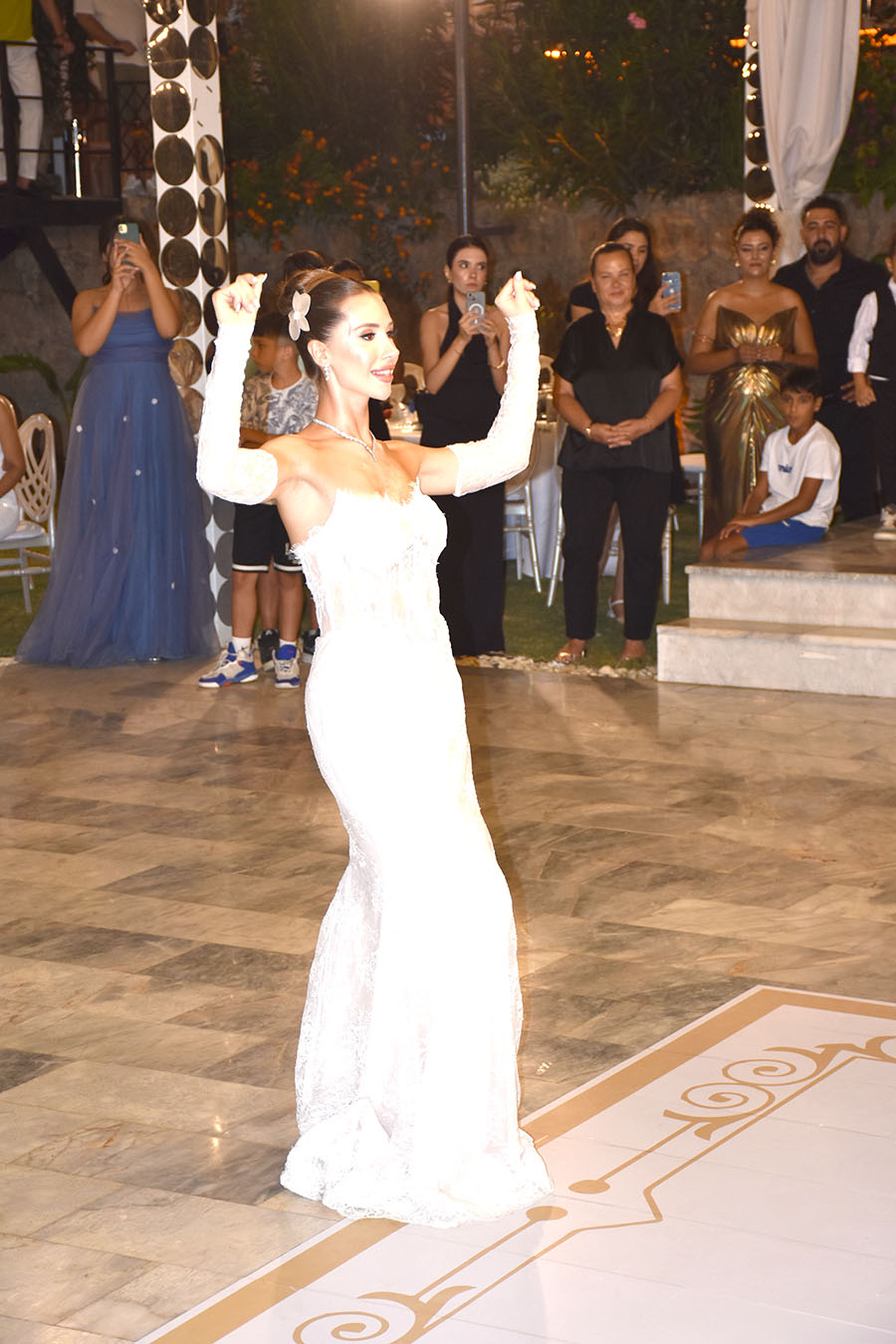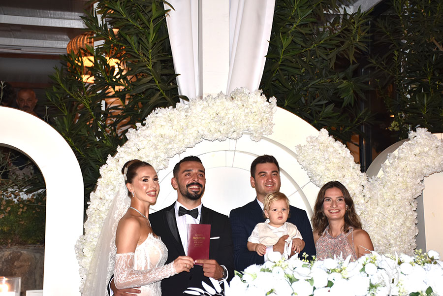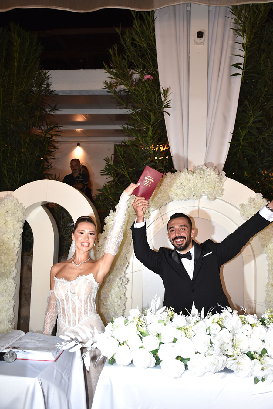 Yaklaşık 500 kişinin katıldığı düğünde çiftin nikâhını Bodrum Belediye Başkanı Tamer Mandalinci kıydı.