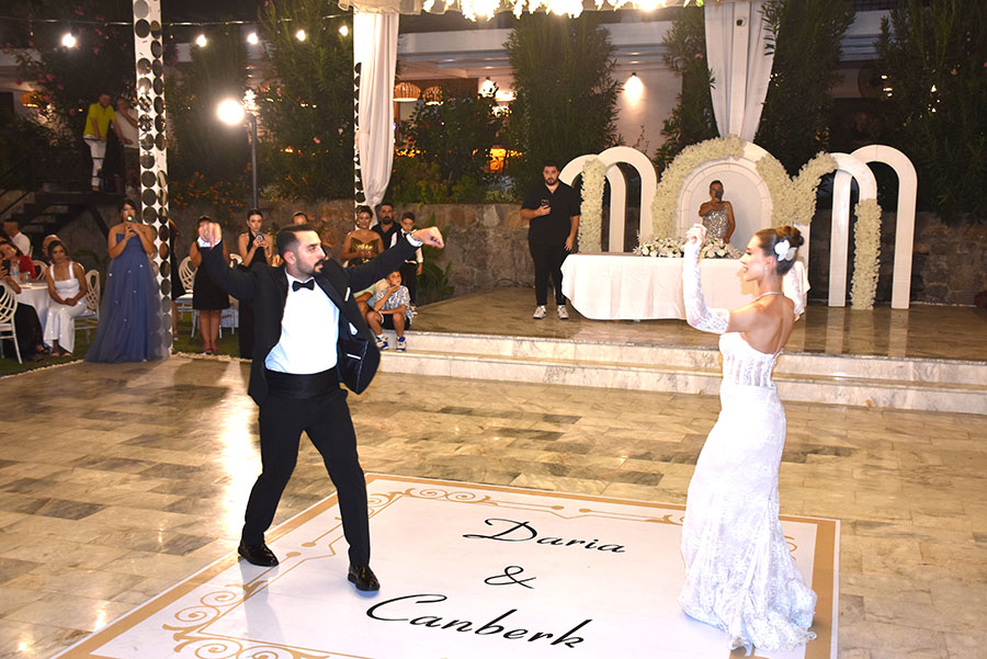 29 yaşındaki damat Canberk Alkaya ile 27 yaşındaki Ukraynalı gelin Daria Trambovych , düğünde misafirlere unutulmaz bir dans gösterisi sundu. Çift, zeybek başta olmak üzere yöresel danslardan oluşan özel bir koreografi hazırlayarak sahneye çıktı. Performans, davetlilerden uzun süre alkış aldı.