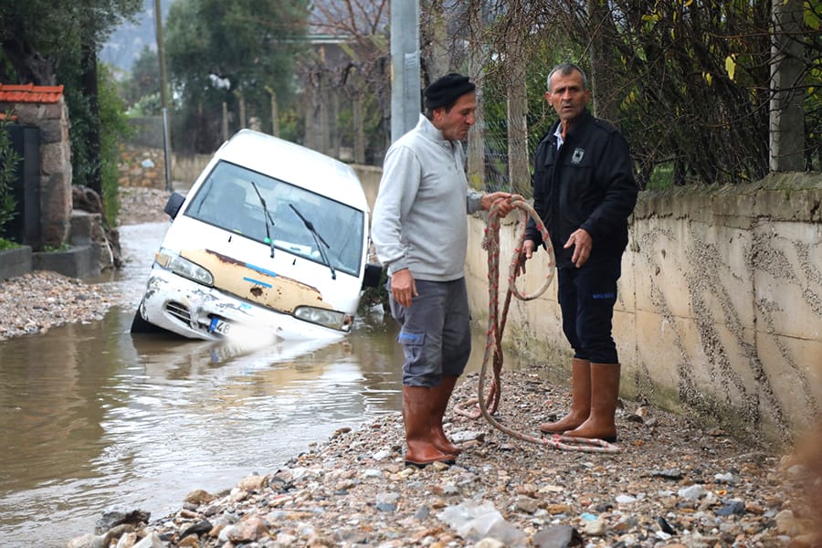 Bodrum Belediyesi, sabah saatlerinden itibaren ilçe genelinde etkili olan yağışlar nedeniyle oluşabilecek taşkın ve su baskınlarını önlemek için çalışmalarını aralıksız sürdürüyor.