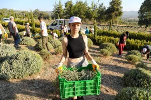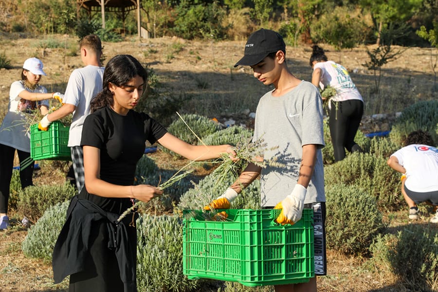 Gıda, ilaç sektörü, kozmetik gibi pek çok alanda kullanımı yaygınlaşan lavanta bitkisi, Bodrum Belediyesi tarafından belediye mülkiyetinde bulunan Etrim Garaova Tarım Park arazisinde Tarım Ar-Ge ürünü olarak yetiştiriliyor. Hasat zamanı gelen lavantalar, Tarımsal Hizmetler Müdürlüğü personelleri tarafından makineler ile biçiliyor. Misafir öğrenciler ise görerek, dokunarak, hissederek öğrenme yolu ile birlik, beraberlik ve dayanışma ruhunu geliştirmek amacıyla Arazi Uygulamaları Dersi içerisinde sabahın erken saatlerinde, biçimleri yapılan lavanta hasatlarının toplama ve taşıma işlerini yaptı. İsmail Hakkı Tonguç Tarım Okulu bünyesinde bulunan Distilasyon Ünitesinde, sıkımları yapılan lavantalardan aynı günün akşamında, uçucu yağları çıkartılarak lavanta yağı ve lavanta hidrosolü elde ediliyor.