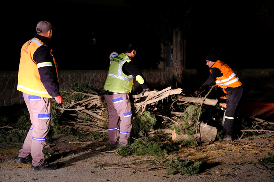 Kent genelinde etkisini gösteren fırtına nedeniyle gelen ihbarları anında değerlendiren belediye ekipleri, aynı anda çok sayıda ağacın devrilmesi üzerine yoğun mesai harcadı. Toplam 80 olaya müdahale eden ekipler, özellikle yollara devrilen ağaçları kısa sürede kaldırarak ulaşımın aksamaması için çalışmalarını sürdürdü.