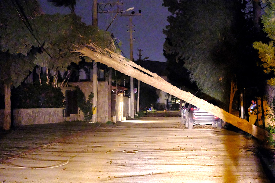 Elektrik tellerinin kopmasına ve kesintilere yol açan ağaç devrilmelerinde ekipler, AYDEM ekipleriyle koordineli şekilde çalıştı.