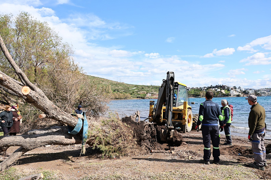 Kent genelinde 13-17 Şubat tarihleri arasında etkili olan olumsuz hava koşulları nedeniyle Müskebi Mahallesi Kabakum Plajı’nda 4, Yalıkavak Mahallesi Küdür mevkiinde 25 Ilgın ağacı ile 2 Akasya ağacı devrildi.
