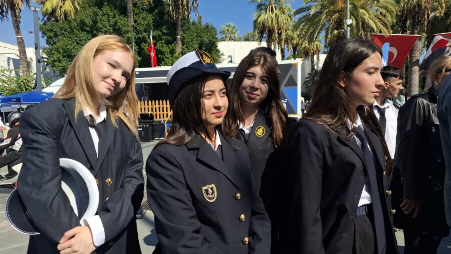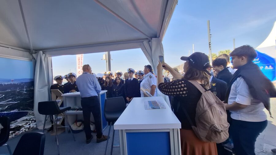 Teos Marina standında Teos Marina Müdür yardımcısı Özgür Ugan‘dan sektör hakkında bilgi edinen gençler, daha sonra STS BODRUM gemisinde Kaptan M. Çetin Bilgin eşliğinde gemiyi gezdi.