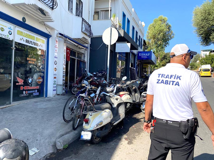 Bodrum’da kötü görüntü oluşturan motosikletler, trafik zabıta ekipleri ile trafik polislerinin ortak çalışmasıyla kaldırıldı.
