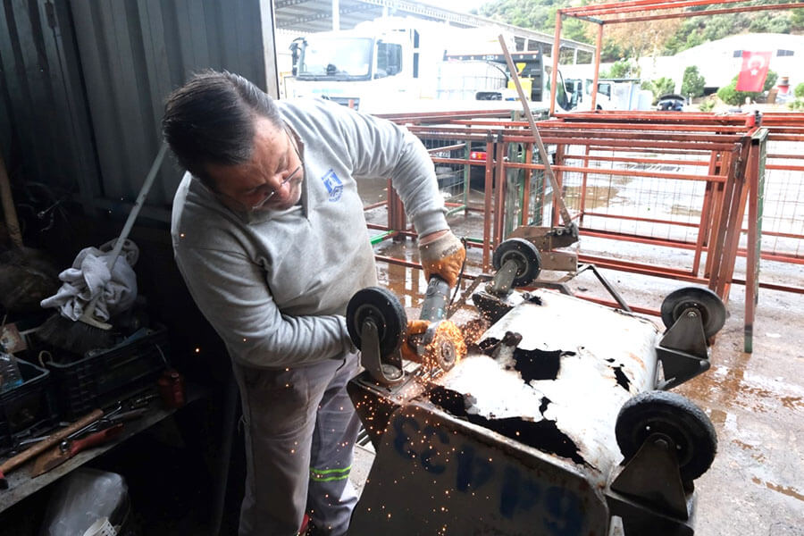 Bunların yanında, tabanları çürümüş ve kullanılamaz hâle gelme riski taşıyan çöp konteynerleri de atılmadan önce bakım ve onarımdan geçirilerek yeniden hizmete sunuluyor. Bu kapsamda 2025 yılı içerisinde bin 349 çöp konteyneri tamir edilerek kullanım ömrü uzatıldı ve yeniden vatandaşların hizmetine sunuldu.