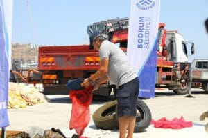 Denizleri atıklardan arındırmak amacıyla gerçekleşen deniz dibi temizlik çalışmasında gönüllü dalış ekibi denizden 213 kilogram atık çıkarırken vatandaşlar da kıyı temizliği yaptı. Çıkarılan atıklar, Gündoğan İskelede sergilenerek geri dönüşümü yapılmak üzere 1. Sınıf Atık Getirme Merkezine götürüldü.