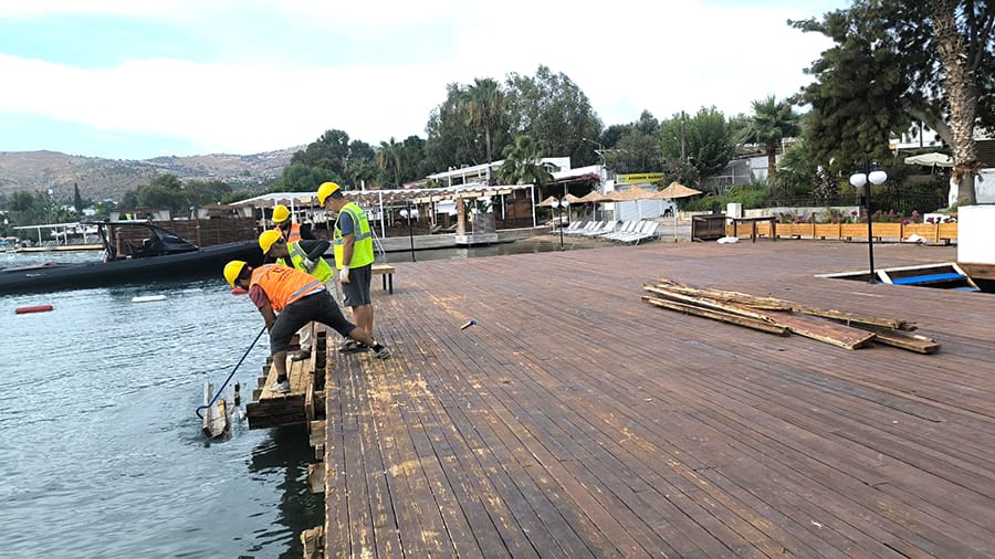 Bodrum’un Türkbükü Mahallesi’nde yapı kayıt belgesi iptal edilen ve mahkeme süreçleri tamamlanan kaçak iskelelerin tahliyesine başlandı.