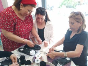 Bennur Ertan ve Gülin Eyri’nin öncülüğünde düzenlenen etkinlikler, ilk olarak parmak arası terlik süsleme etkinliği ile kadınları bir araya getirdi.