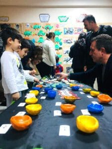 Sergide geçmişten günümüze dinazorlar dönemi, mağara yaşamı, göçebe hayat, icat ve keşifler gibi konular yer alırken çocukların yaparak yaşayarak oluşturdukları seramik ve bunun gibi bir çok ürün de dikkat çekti.
