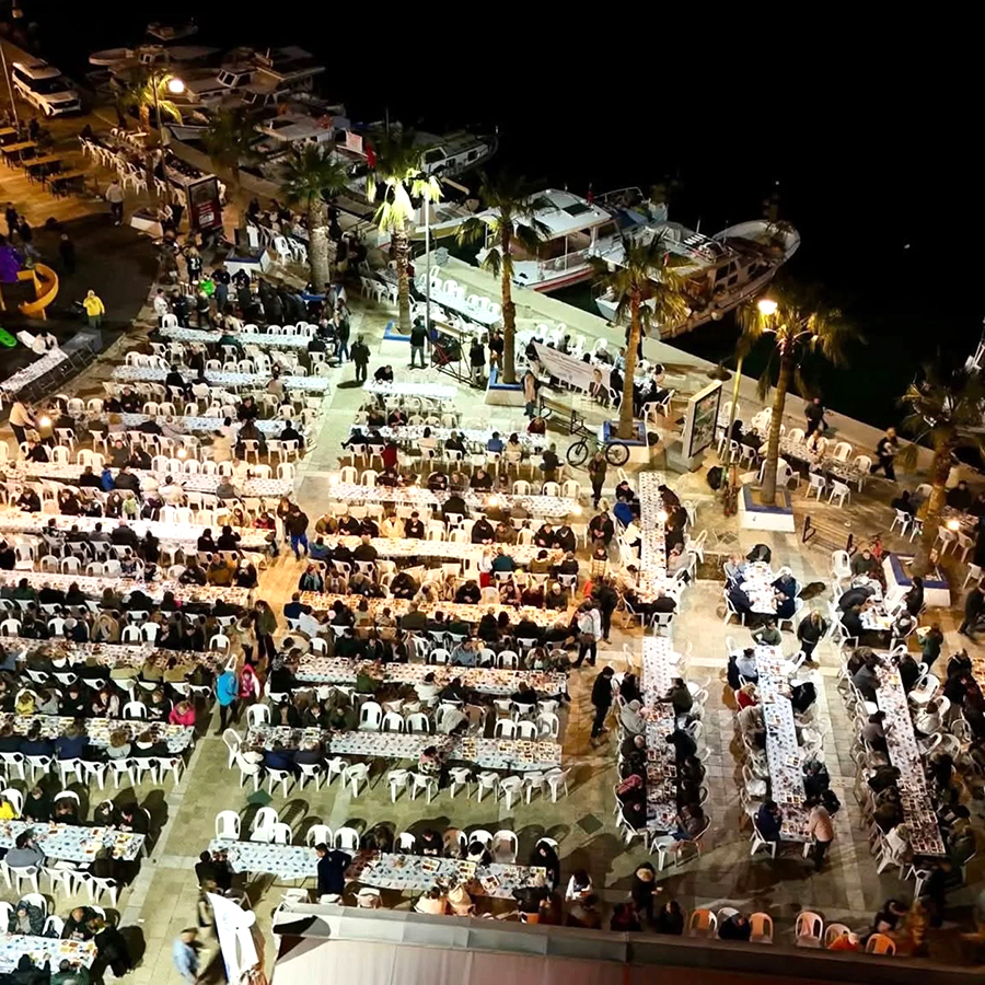 Ahmet Yıldızhan tarafından karşılanan iftarın ardından Bodrum Belediye A.Ş. personelleri misafirlere çay ikram ederken çocuklara da pamuk şeker dağıttı.