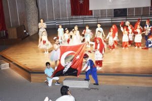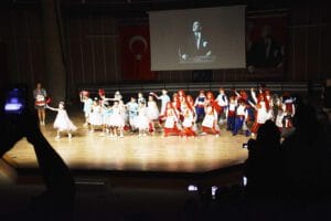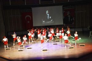 Saygı duruşu ve İstiklal Marşı ile başlayan programda öğrenciler sergilediği folklor gösterileri, pop müziği eşliğinde dans gösterileri ile büyük beğeni topladı.