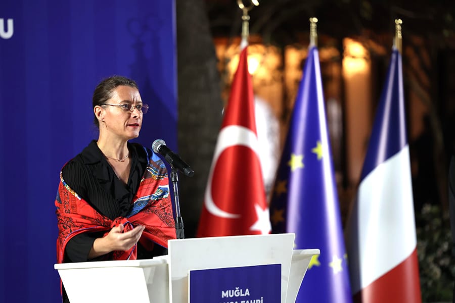 Görev takdim töreninde konuşan Fransa’nın Ankara Büyükelçisi Isabelle Dumont, “Bölgeye gerçekleştirdiğimiz ilk ziyaret. Bazı nedenler sebebiyle buraya gelmeye çok istekliydik. Türkiye’ye geldiğimden bu yana Muğla ve Bodrum bölgesi Fransa ile büyük iş birliği potansiyeli hakkında çok şey duydum. Pek çok Fransız için Bodrum’un tatil ve turizmle eş anlamlı olduğu doğrudur. Ama bizi birleştiren tek şey turizm değil. Aynı zamanda bir denizi, Akdeniz’i ve özellikle iklim değişikliğinin etkisi altında bu denizin ve kıyı şeridinin geleceğine ilişkin tüm sorunları da paylaşıyoruz. Bu tarz sorunları da düşününce birlikte yapacak çok şeyimiz var. Hepinize çok güveniyoruz. Fidel Berber’e de yeni görevinde başarılar diliyorum.” şeklinde konuştu.