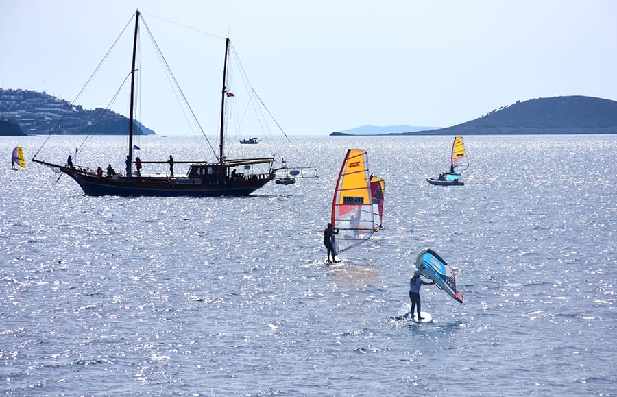 Bodrum’da Techno 293, Rs Feva ve wing foil sınıfında Muğla Gençlik Kupası Yelken Yarışları yapıldı.