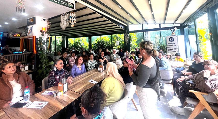 Bodrum Kadın Dayanışma Derneği Temsilcisi Figan Erozan ve Bodrum Belediyesi Kadın ve Aile Hizmetleri Müdürlüğü yetkililerinin öncülüğünde Mumcular Mahallesi’nde gerçekleştirilen buluşmaya, Mumcular ve çevre mahallelerden 60 kadın katıldı.