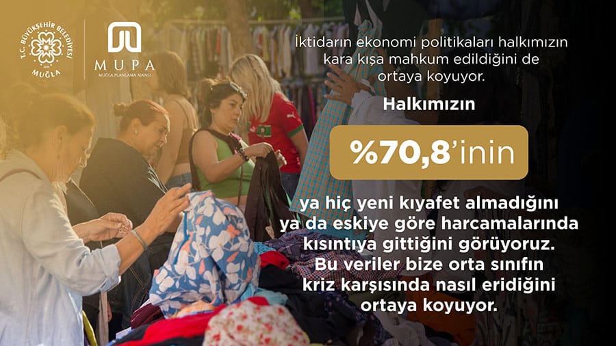 Muğla Planlama Ajansı’nın (MUPA) araştırmasına göre Muğla halkının mutfak, hijyen, giyim, sosyal harcamalarında büyük bir kısıntıya gittiğini ortaya koydu. Kadınlar ve yaşlılardaki oranların yüksekliği dikkat çekti