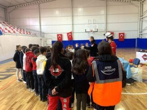 AFAD Bodrum Gönüllüleri, 1-7 Mart Deprem Haftası etkinlikleri çerçevesinde Bitez Gülümser Mehmet Danacı İlkokulu’nda deprem tatbikatı düzenledi. Öğrenciler, tatbikatta deprem anında yapılması gerekenleri uygulamalı olarak öğrendi.