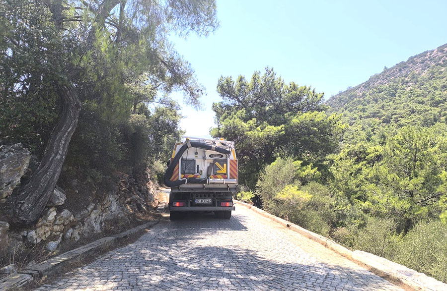 Bodrum Belediyesi Temizlik İşleri Müdürlüğü, artan sıcaklıklarla birlikte meydana gelebilecek olası orman yangınlarının önüne geçmek amacıyla kent genelindeki ormanlık alanlarda temizlik çalışmalarına devam ediyor.