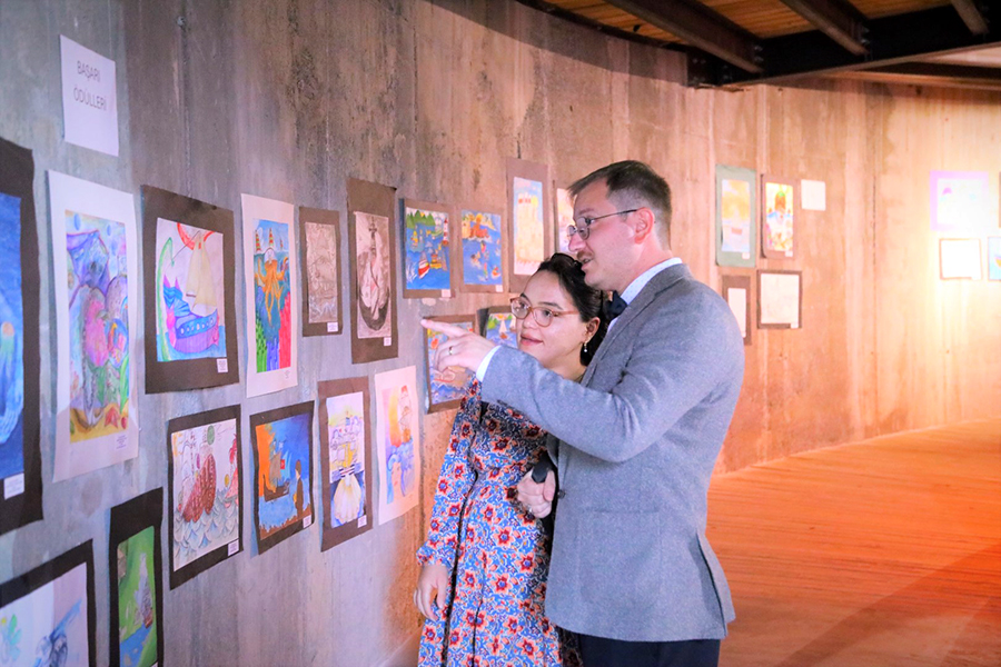 Resimlerini sergide gören öğrencilerin ve ailelerinin mutlulukları sergi açılışının enerjisini yükseltti.