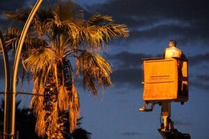 Bodrum Belediyesi Park ve Bahçeler Müdürlüğü, şehrin yeşil dokusunu korumak ve estetik görünümünü artırmak amacıyla palmiye ağaçlarında budama çalışması yapıyor.