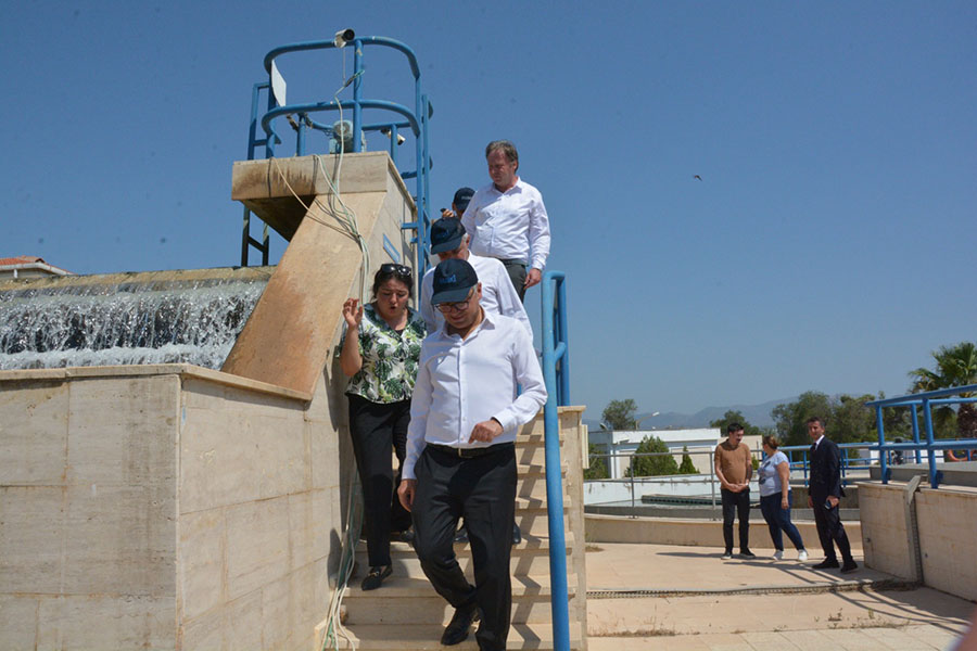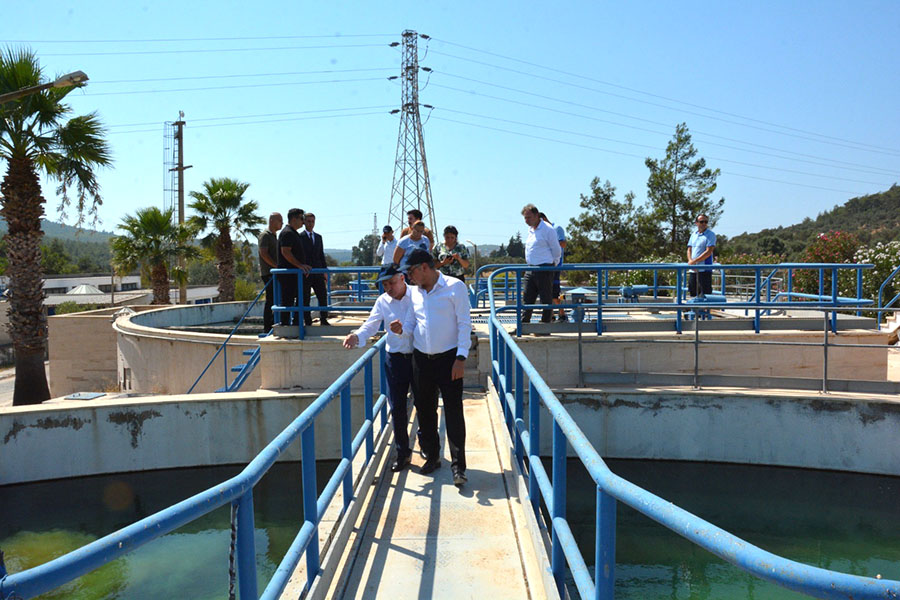 Ziyaretler kapsamında ilk durak, Mumcular İçme Suyu Arıtma Tesisi oldu. Mumcular Barajından ve 12 sondaj kuyusundan alınan su bu tesiste gerekli işlemlerin ardından Bodrum İlçesine içme ve kullanma suyu olarak veriliyor. 35 bin m2 alana sahip tesis maksimum 325 L/sn su arıtım kapasitesine sahip. Su havalandırma, ön dezenfeksiyon (ozon ile), durultucular (koagülasyon ve flokülasyon), hızlı kum filtreleri bölümlerinde kimyasal ve fiziksel yöntemlerle arıtılan su laboratuvarda haftalık, günlük ve ikişer saatte bir yapılan kimyasal ve mikrobiyolojik analizlerle incelenmekte ve denetim altında tutuluyor.