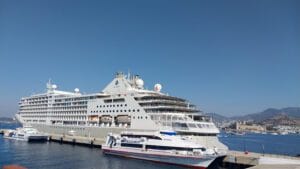 Bodrum’a “Silver Moon” adlı kruvaziyer 554 yolcu getirdi. Bahamalar bayraklı 183 metre uzunluğundaki gemi Bodrum Cruise Port‘a yanaştırıldı. Gemide çoğu ABD’li ve Avustralyalı 554 yolcuyla ile 414 personel bulunuyor. Patmos..