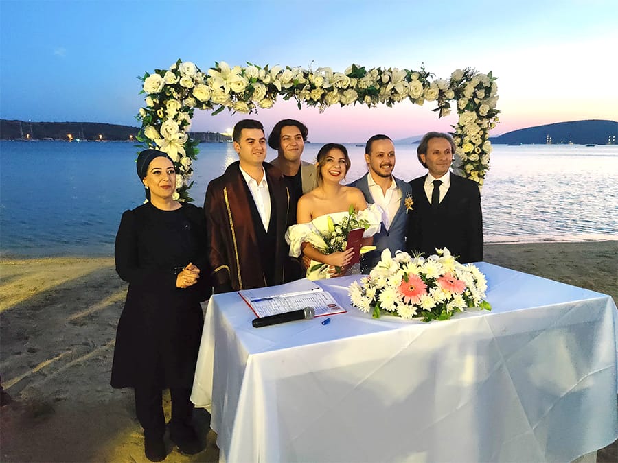 Çiftin Very Chic Otel’de düzenlenen nikah törenine Muğla Büyükşehir Belediye Başkanı Ahmet Aras, Bodrum Belediye Başkanı Tamer Mandalinci ile Şimşek ve Tolaman ailesinin yakınları, dostları, meslektaşları olmak üzere çok sayıda davetli katıldı.