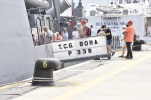 Türk Deniz Kuvvetleri‘nin TCG Bora gemisi, DENİZKURDU-11/24 Tatbikatı çerçevesinde Bodrum limanında halkın ziyaretine açıldı. İki gün boyunca açık olan ziyarette birçok vatandaş gemiyi ziyaret ederek fotoğraf çektirdi.