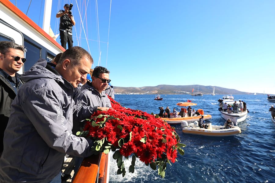 Maximiles Black 36. The Bodrum Cup’ta ilk yarış günü, The Bodrum Cup’ın kurucularından Arif Yılmaz ve hayatlarını kaybeden tüm denizciler anısına denize çelenk atılmasıyla başladı. Programa, The Bodrum Cup Organizasyon Komitesi Başkanı Süleyman Uysal, Onursal Başkanı Erman Aras, Türkiye İş Bankası Özel Bankacılık Müdürü Tuba Tepret, Türkiye İş Bankası Ödeme Sistemleri Ekosistem Müdürü Hüsnü Mete Güneş ve Türkiye İş Bankası Bireysel Bankacılık Pazarlama Müdürü Çağlar İlter, Muğla Valisi Dr. İdris Aybıyık, Muğla Büyükşehir Belediye Başkanı Ahmet Aras, Bodrum Kaymakamı Mustafa Çit, Bodrum Belediye Başkanı Tamer Mandalinci katıldı.