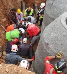 Konacık Mahallesi Gazderesi Caddesi’ndeki bir inşaatta çalışma yapan Feyyaz Şimşek ve Ferhat Görerer isimli 2 işçi, yağışla yumuşayıp kayan toprak yığınının altında kaldı. AKUT operasyon binasına yakın yerde oluşan göçüğe..